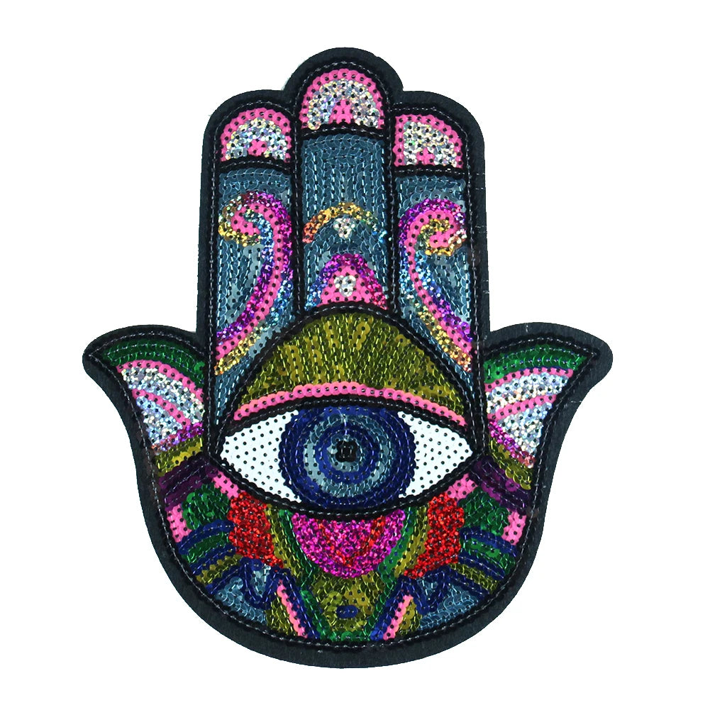 Hand Blue Eyes Sequin Patches Iron on